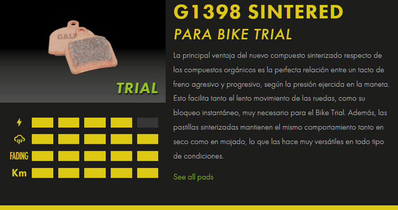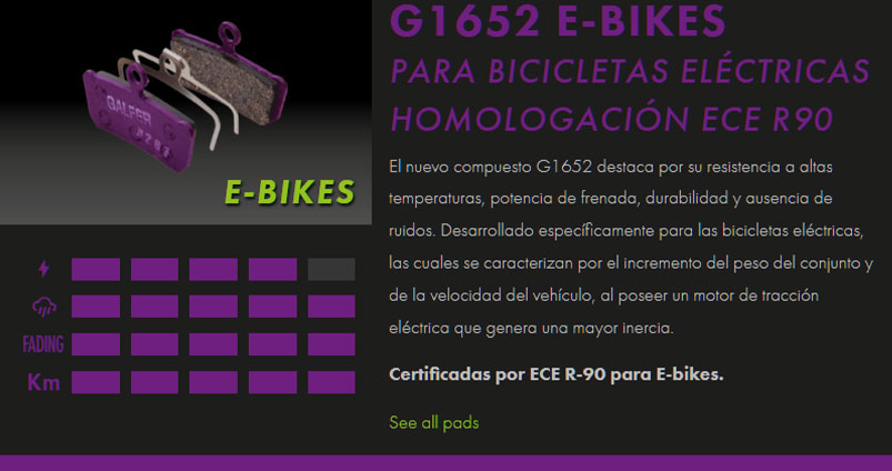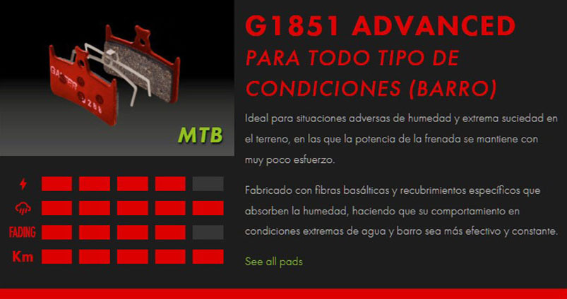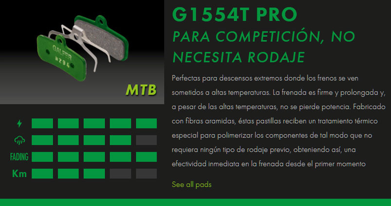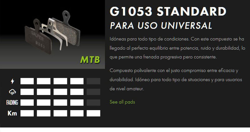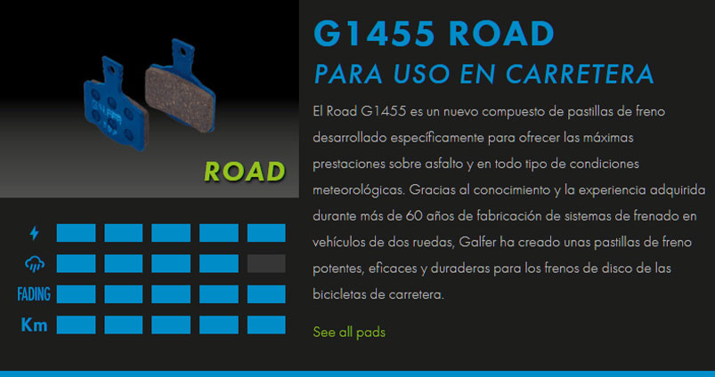 Con las pastillas de freno Galfer Bike el usuario obtiene una constancia permanente en la respuesta de la frenada, comportándose las pastillas del mismo modo durante toda su vida útil, pudiendo controlar la bicicleta durante las frenadas y transformándose en un aumento de la confianza y de la seguridad del ciclista.